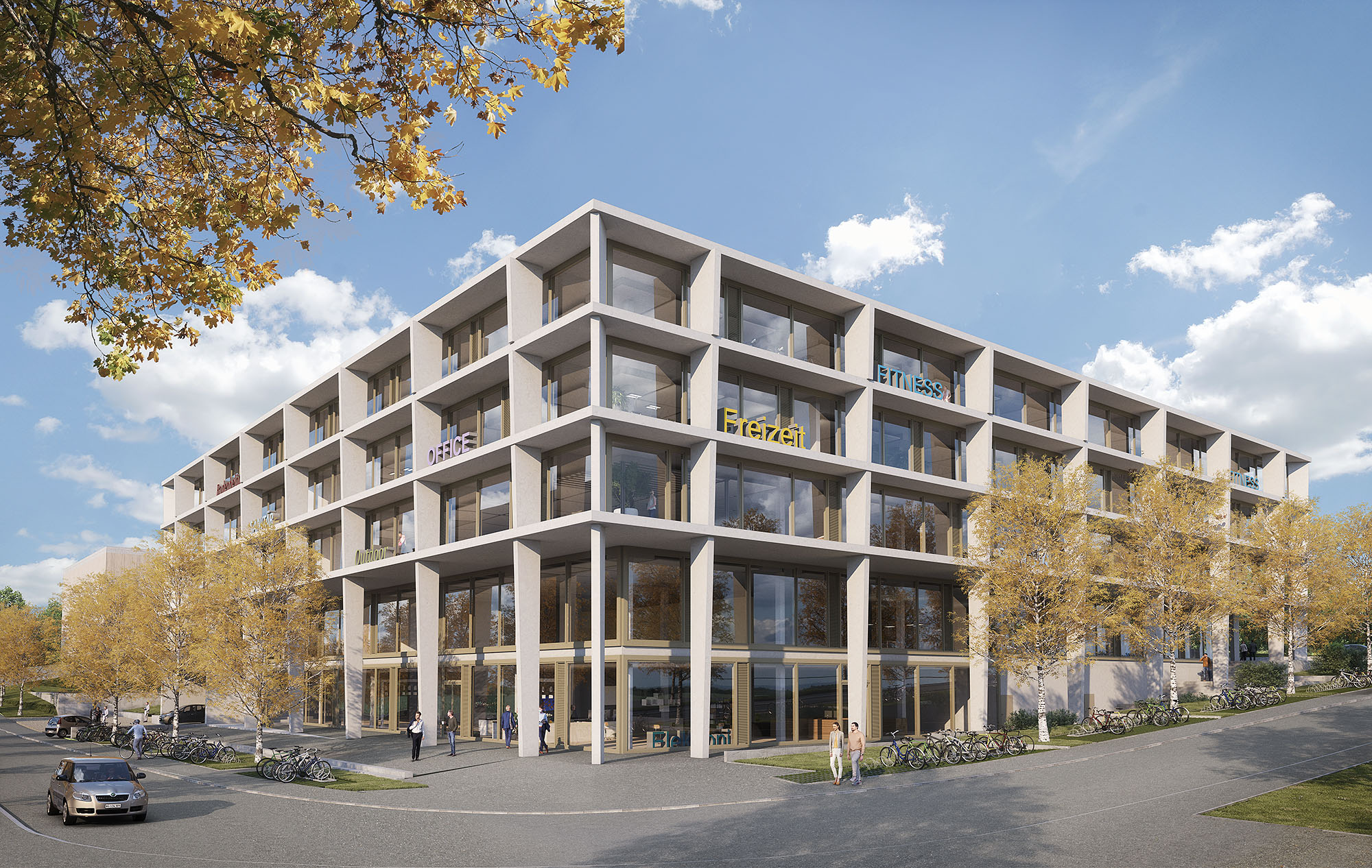 Die Gebäude bieten Dienstleistungen und Büronutzung sowie grossflächige Verkaufs- und Ausstellungsräume. Moderne, flexible und zeitgemäss gestaltete Büroräumlichkeiten werden den jeweils unterschiedlichen Bedürfnissen entsprechend gestaltet. Es entstehen unter anderem vielfältige Arbeitsplätze, gemeinschaftliche Aufenthaltsbereiche und ruhige Rückzugsorte. Grosszügige Atrien schaffen Transparenz, Sichtbezüge und damit auch qualitativ hochwertige Räume.