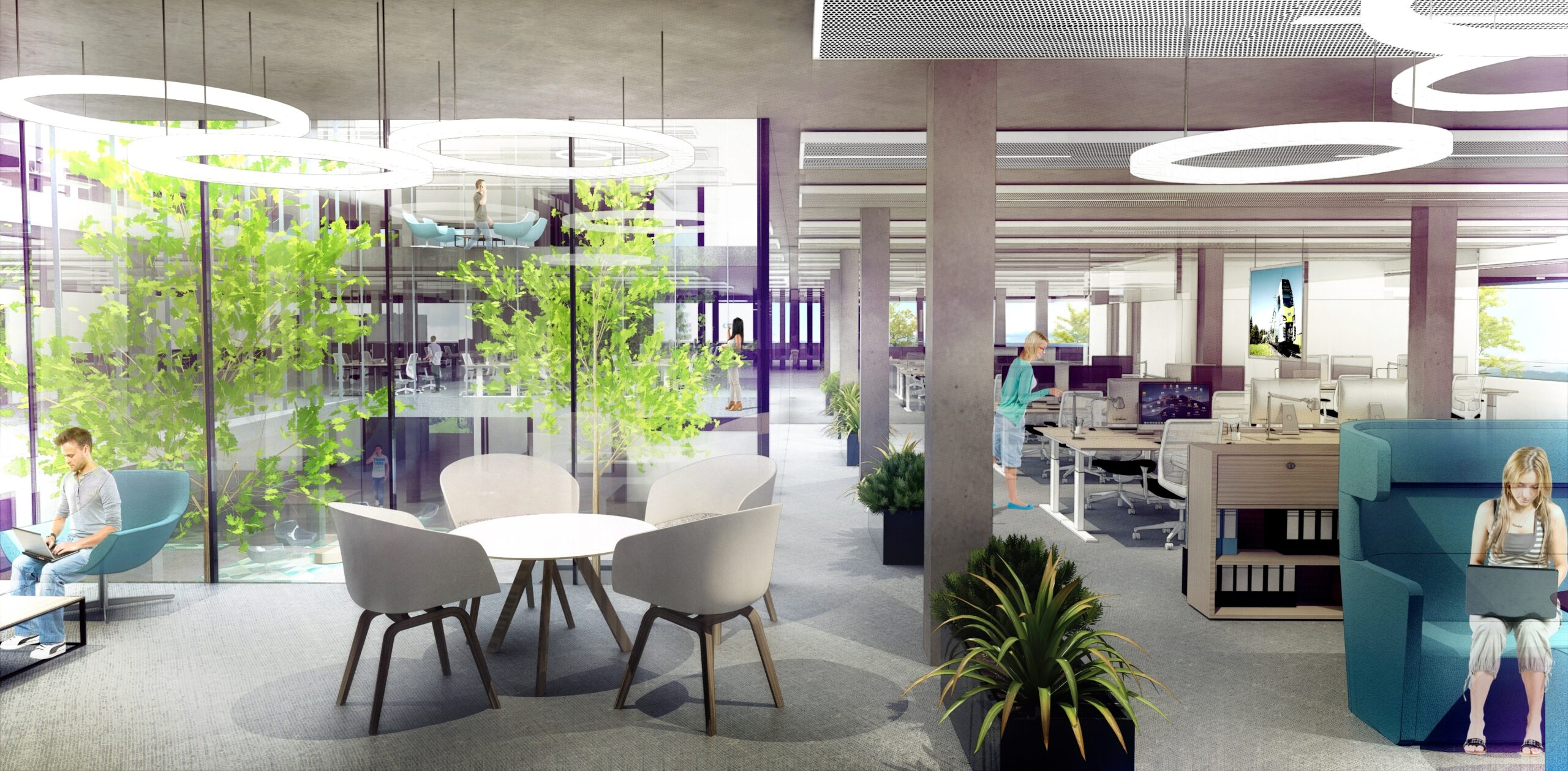 Die Gebäude bieten Dienstleistungen und Büronutzung sowie grossflächige Verkaufs- und Ausstellungsräume. Moderne, flexible und zeitgemäss gestaltete Büroräumlichkeiten werden den jeweils unterschiedlichen  Bedürfnissen entsprechend gestaltet. Es entstehen unter anderem vielfältige Arbeitsplätze, gemeinschaftliche Aufenthaltsbereiche und ruhige Rückzugsorte. Grosszügige Atrien schaffen Transparenz, Sichtbezüge und damit auch qualitativ hochwertige Räume.